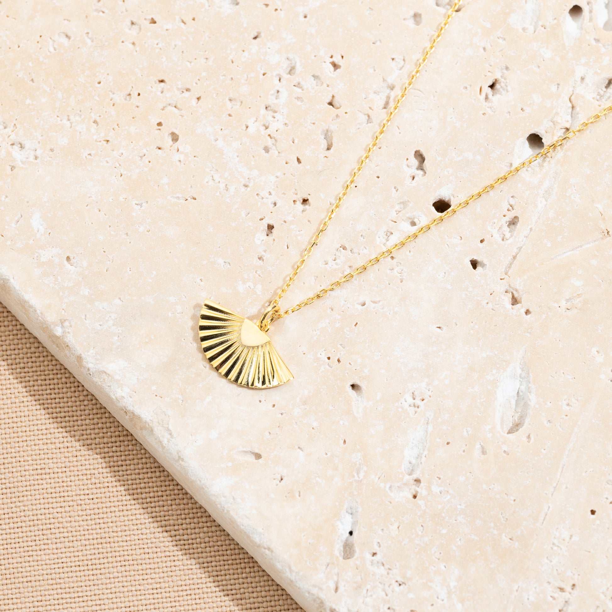 İncelikle tasarlanmış yelpaze gümüş kolye, zarafeti ve estetik duruşuyla göz alıcı bir şıklık sunuyor. 925 ayar gümüşten üretilen bu kolye, yelpaze formundaki detaylarıyla Asya esintili bir hava taşırken aynı zamanda feminen ve modern bir ifade kazandırır.